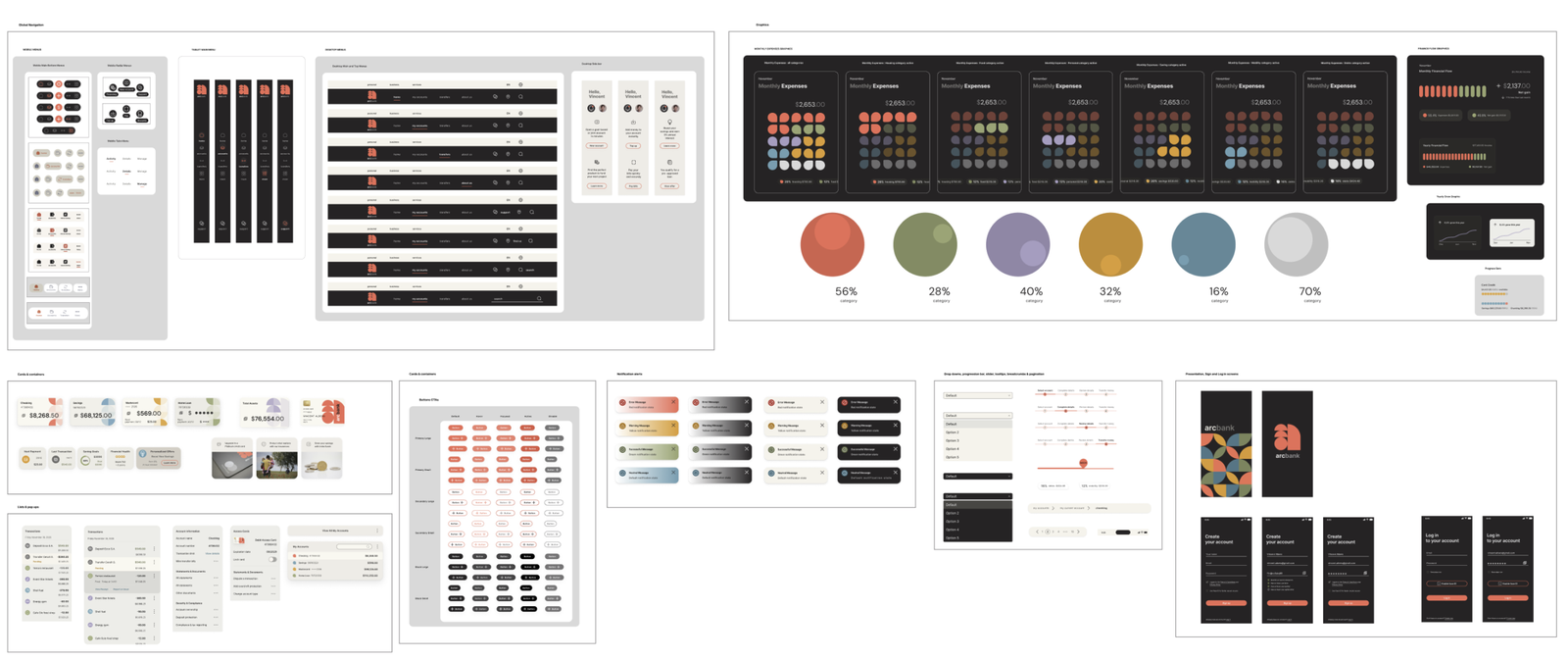 To solve inconsistencies across devices, I created a design system and component library that ensures clarity, cohesion, and scalability. Every element, from screens to interactions, reflects the ArcBank brand while remaining adaptable for future growth.