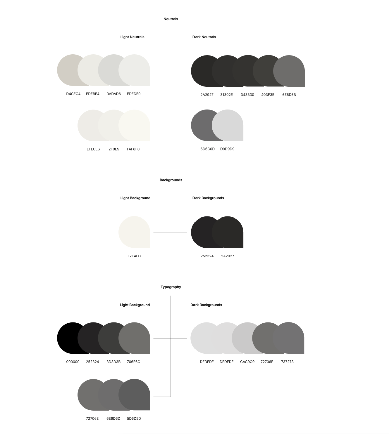 • Color: Primary, secondary, accent, and neutral tones guide hierarchy, navigation, and emotional tone.