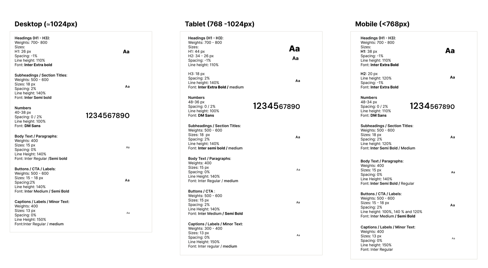 • Typography: Inter provides clarity and readability, with defined weights, hierarchy, and capitalization rules.