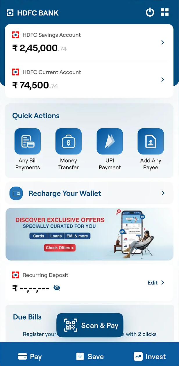 Early banking apps often overwhelm users with cluttered menus and disconnected account views. In many competitor apps, key actions are hidden in nested menus or long scrolling lists, forcing users to hunt for tasks. Heuristic evaluations also revealed that some screens lacked clear hierarchy, requiring users to mentally map their accounts to understand their finances.
