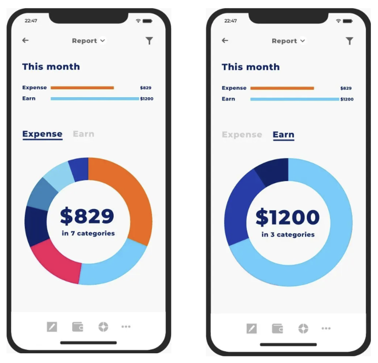 Dashboards prioritize key insights first, while secondary details remain visible but unobtrusive. Introducing dark mode creates a calmer environment for reflection, helping users focus on understanding their spending patterns without visual strain.