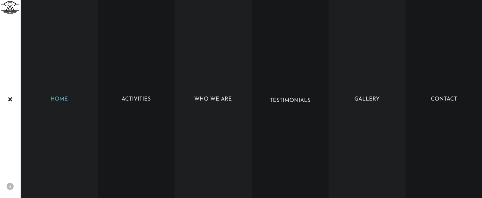The navigation menu was redesigned using six square blocks, Home, Activities, About Us, Bar, Gallery, and Contact, so all main options are visible at a glance, no matter the screen size.